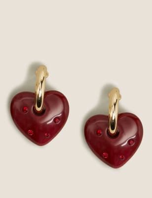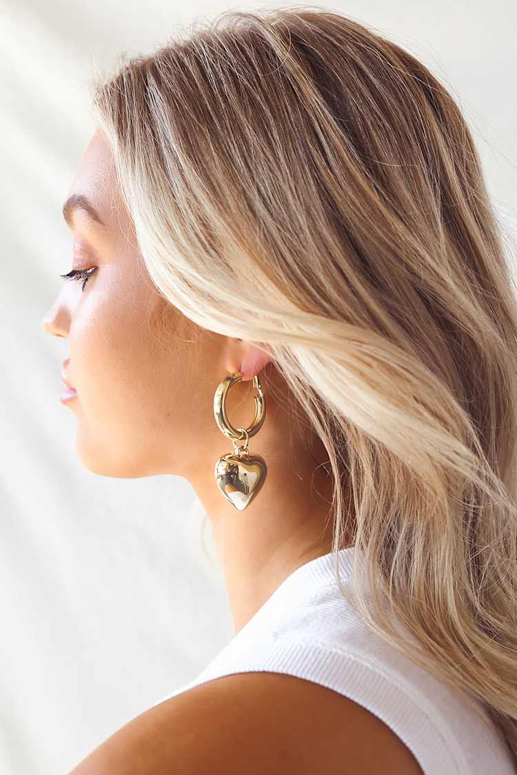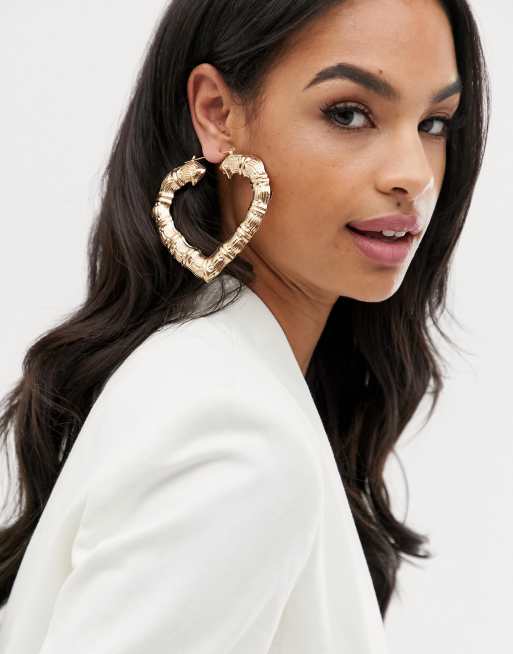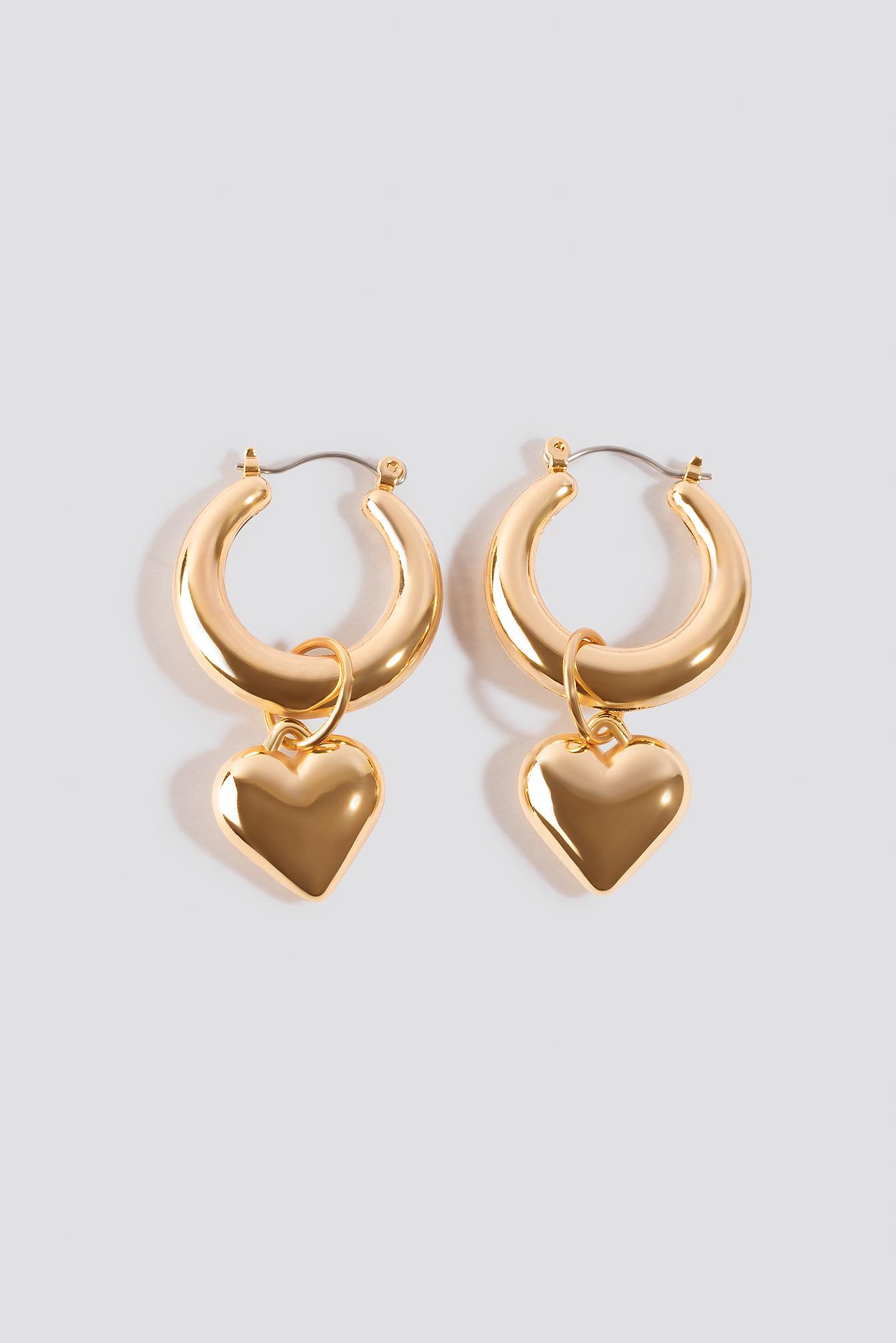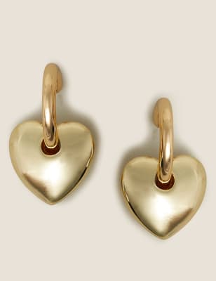Home Chunky chain heart earrings. Featuring a gold chunky heart with a hoop design theyre a must-have for the weekend.